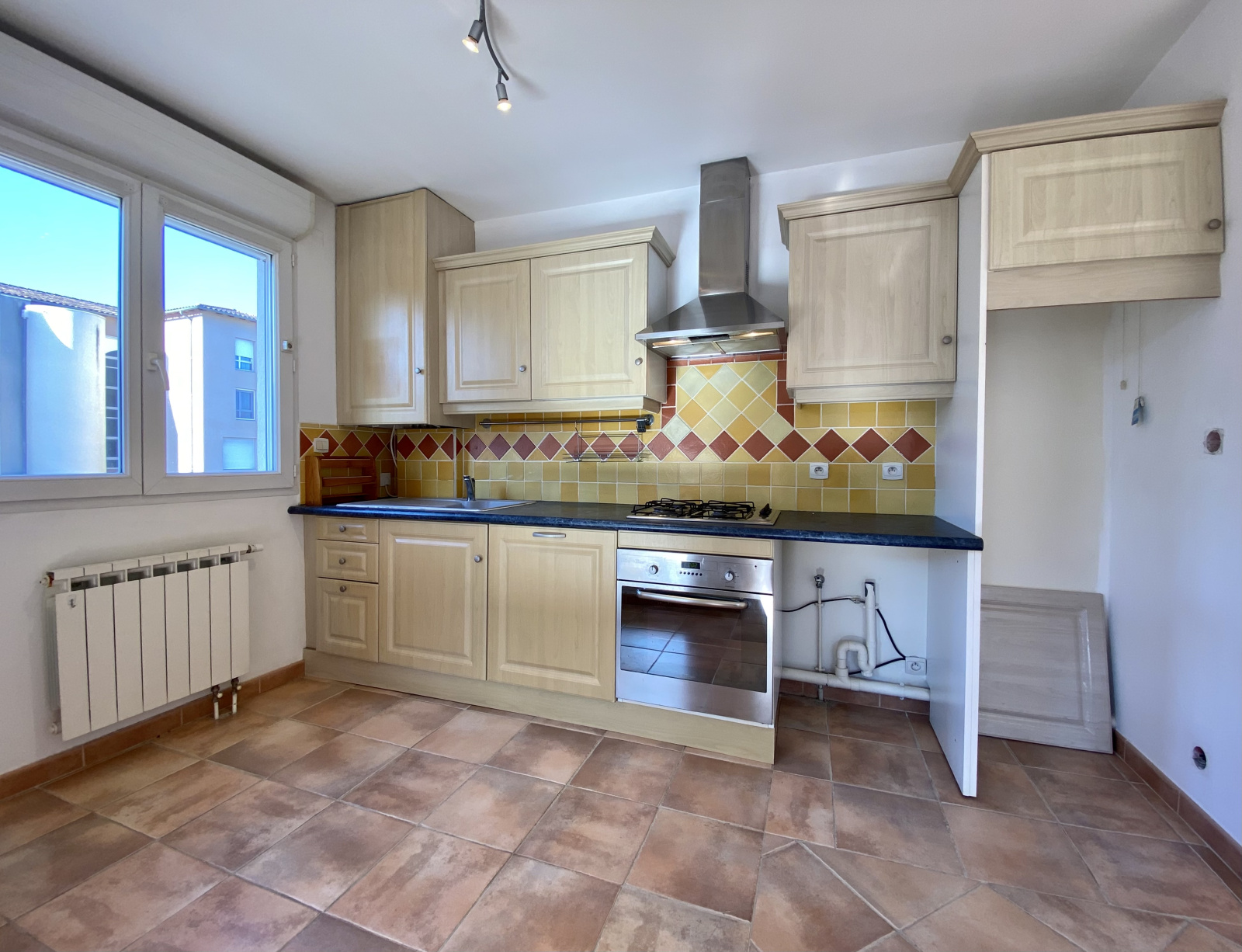 Dans résidence sécurisée, lumineux appartement au 1er étage de type T3 d'une superficie d'environ 68 m² comprenant un vaste hall d'entrée, un séjour avec cuisine semi-équipée ouverte de 31 m², 2 chambres confortables (12.05 m² & 11.20 m²) salle d'eau, wc, terrasse couverte de 10.40 m² & une place de stationnement nominative. *Etat impeccable.; chauffage gaz de ville.
