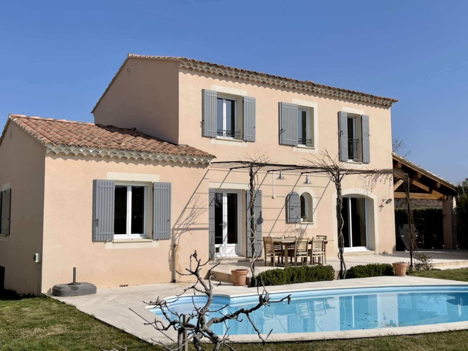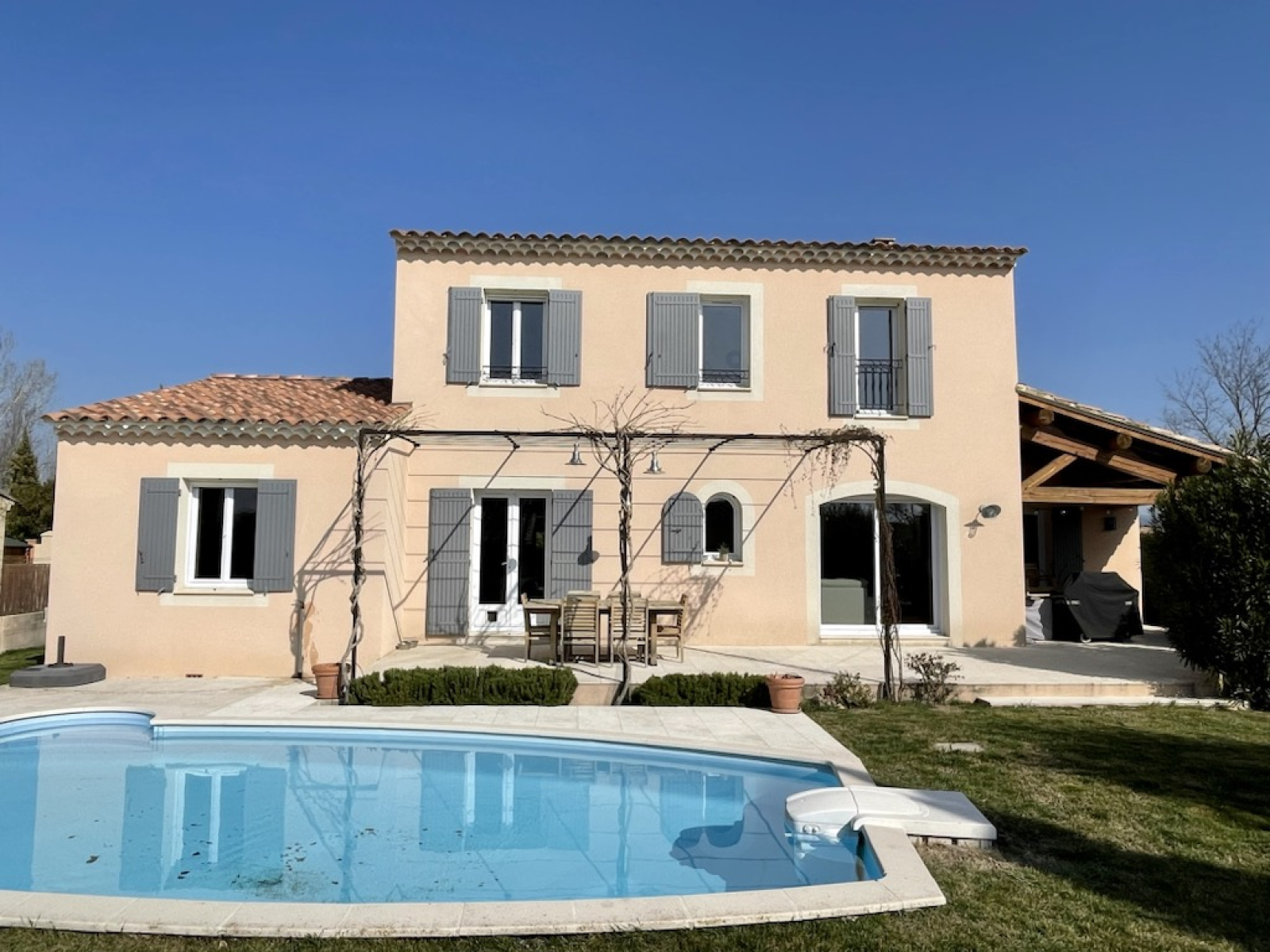 Résidence sécurisée et calme, belles prestations pour cette maison récente (DAT année 2006) de type T6 d'une surace habitable d'environ 180M², comprenant un hall d'entrée, un bel espace de vie d'environ 50M² composé d'un séjour, d'une cuisine équipée avec un îlot central et d'un coin repas, une suite parentale (avec dressing et salle d'eau) au rez de chaussée d'environ 25M², bureau, buanderie & wc. A l'étage 3 chambres de ( 12M², 13M² & 17M² ), 1 salle d'eau,wc. Garage et piscine à forme libre sur terrain clos & arboré d'une contenance de 824 M².